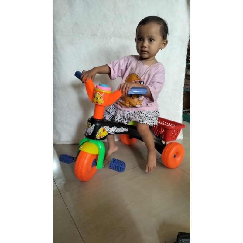 ukuran : 64cm x 40 cm x 50cm fitur :- sepeda roda tiga non music pencet yg bunyinya tet...tet...tet non batu batre