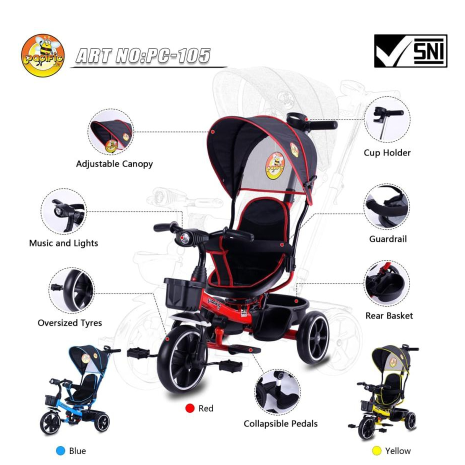 Ibu & Bayi > Perlengkapan Travelling Bayi > Stroller & Perlengkapan Travelling > Sepeda balita roda tiga pacific 105 106 tricycle kereta dorong anak bayi balita dorongan anak bayi balita baby stroller sepeda anak roda tiga bayi balita