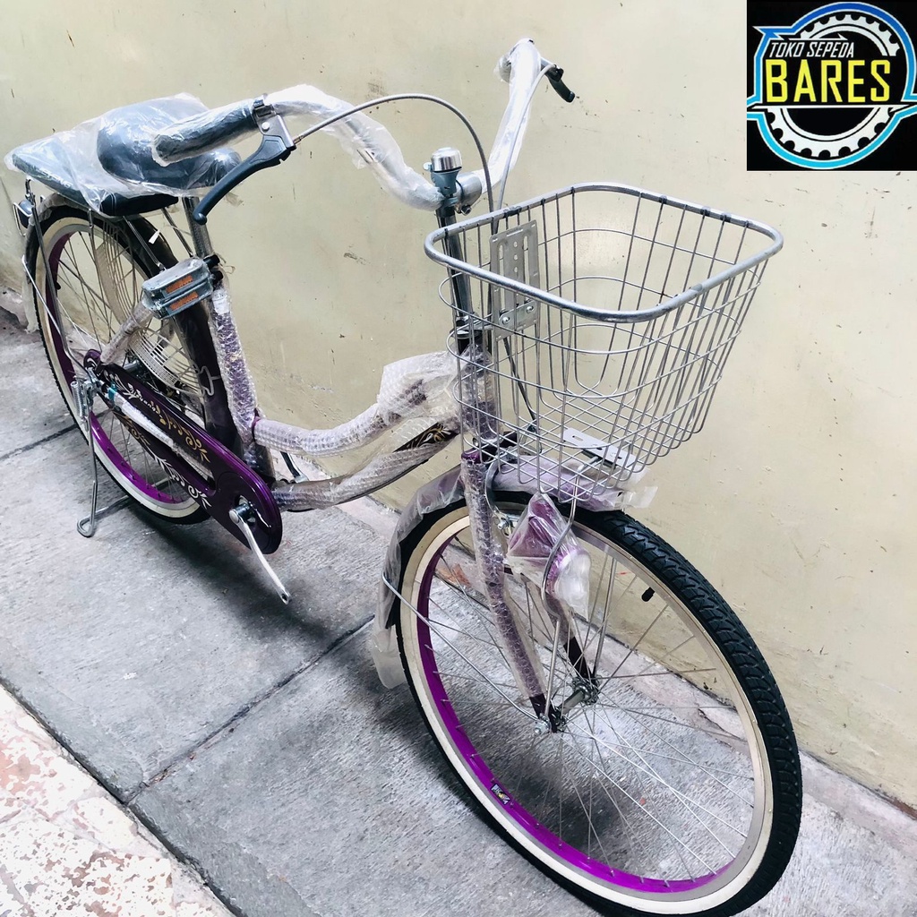 SPESIFIKASI : - Merk: Jie Yang / Jieyang - Frame Besi Baja Kuat ( Hiten Steel) - Keranjang besi tebal - Velg Alloy Double wall - Penutup rantai - Boncengan Belakang Busa tebal - Stang stainless tebal - Jok busa empuk - Standard besi - Barang 100% asli dari pabrik