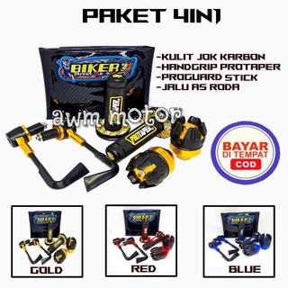 Paket Sarung Jok Kulit Jok Karbon Biker + Handgrip Domino + Jalu As Roda Depan Universal