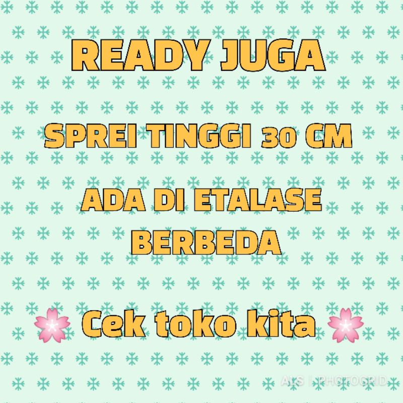 Tinggi sprei 20cm FREE 2 sarban dan 2 sargul, terdapat karet disetiap pojokan.