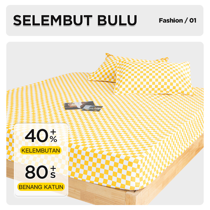 Detail Seprai ukuran 120cm x 200Seprai Motif Seprai Kotak Ala Korea Free 2 Sarung Bantal