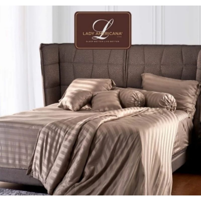 sprei lady americana premium bed linen tencel asli original from pabrik harga saleee free packing aman Uk 160x200×40cm 700 rb Uk 180x200x40cm 900 rb 160 hanya putih 180 ada putih gold & light brown
