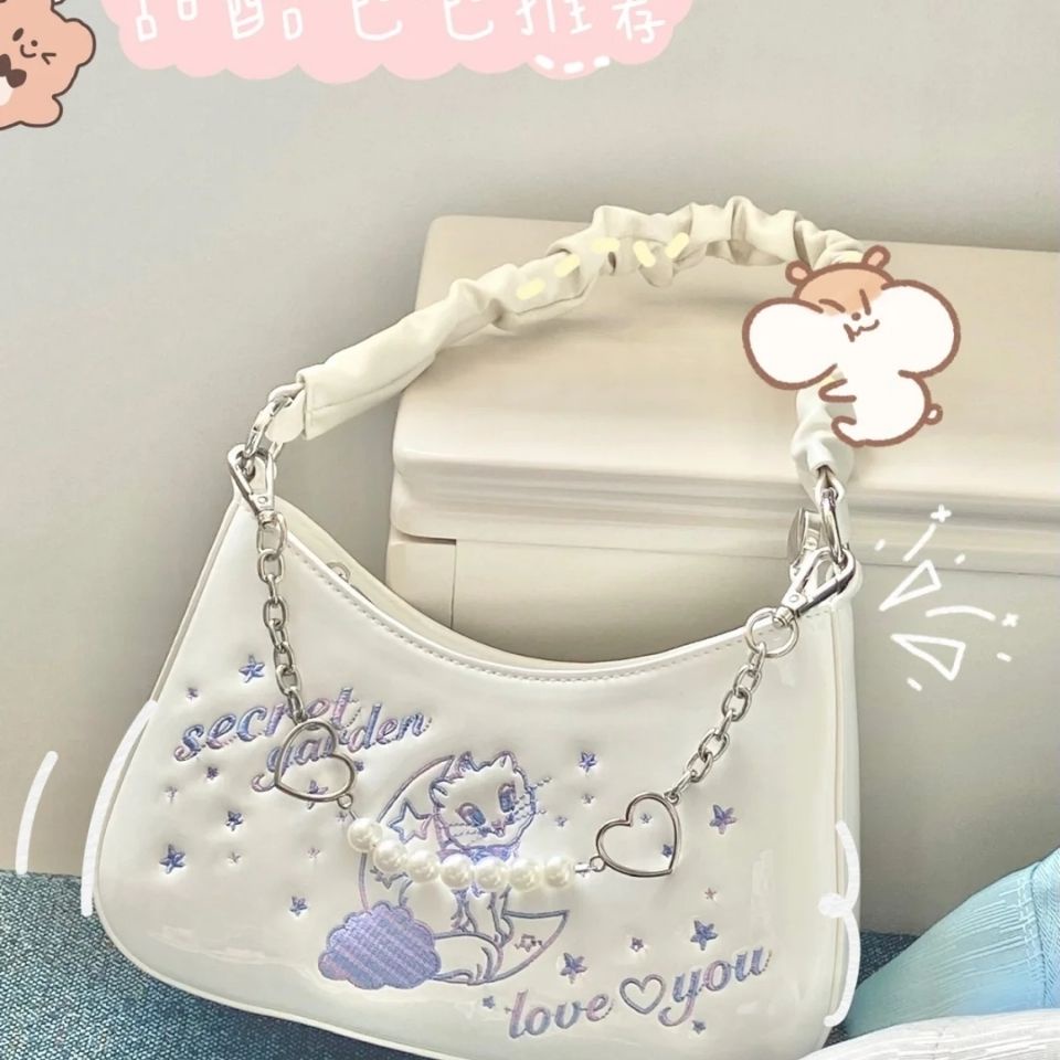Detail ✲Sera 2021 Baru Secret Garden Light Punk Manis Pedas Tas Bahu Serbaguna Gadis Ketiak Tas Rantai Mutiara Tas