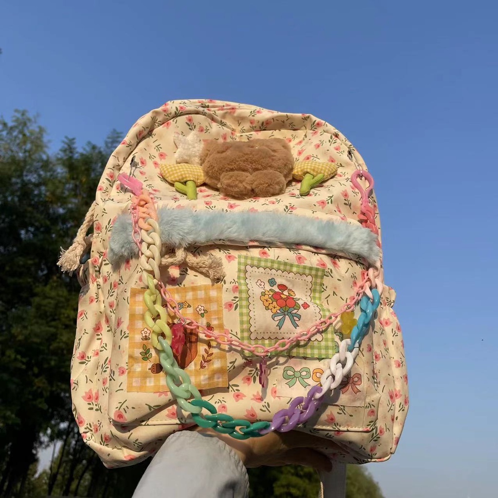 Tas Wanita > Ransel Wanita > sera 2022 baru berbulu beruang tas sekolah bunga pecah perempuan niche kampus dua dimensi ransel mahasiswa berkapasitas besar