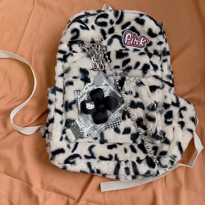 Tas Wanita > Ransel Wanita > Sera 2022 tren kampus baru mahasiswa gadis panas ransel leopard print liar retro berkapasitas besar untuk penggunaan ganda di kelas