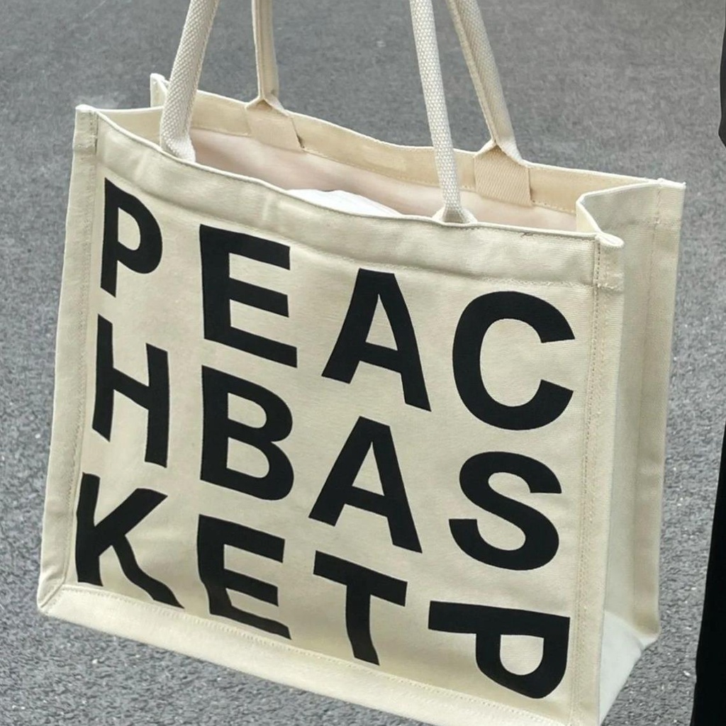 Detail Sera 2023 tas tote bertekstur baru ceruk huruf tas kanvas berkapasitas besar tas bahu kelas mahasiswa