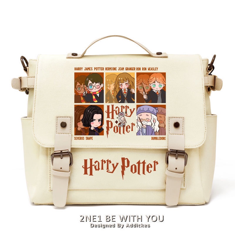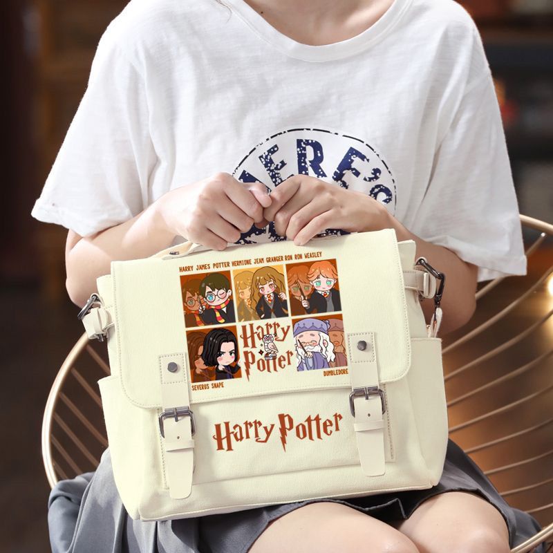Detail ❧Sera Harry Potter co-branded sekitarnya sekolah sihir lucu kartun siswa kanvas tas bahu portabel tas Messenger