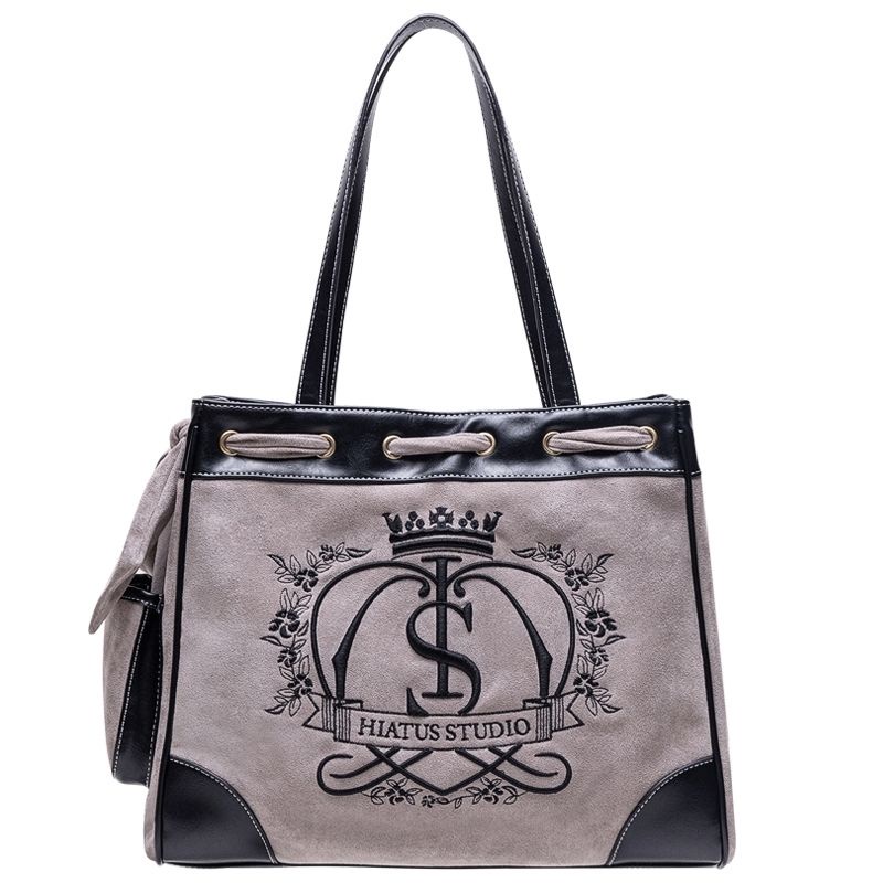 Sera HIATUS Literary Retro Flower Letter Crown Embroidery Tote Bag Autumn and Winter Suede Tas Bahu Kasual Berkapasitas Besar