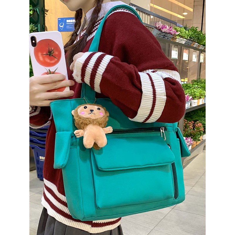 Detail ✁Sera Mahasiswa Kelas Kanvas Tas Wanita Kapasitas Besar Angin Jepang Serbaguna Tas Bahu Kasual Komuter Tote Bag
