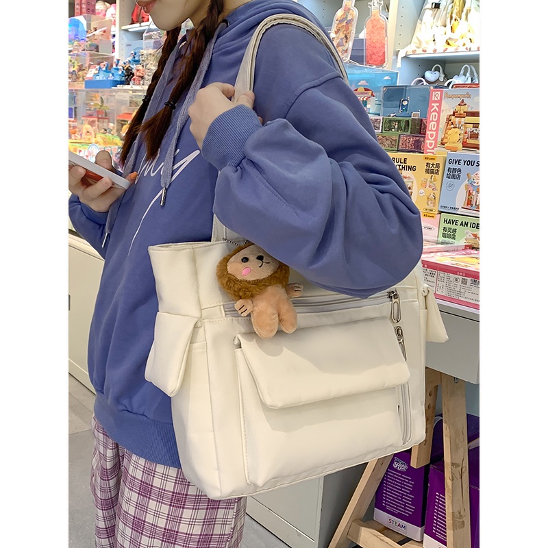 Tas Wanita > Tas Selempang & Bahu Wanita > ✁Sera Mahasiswa Kelas Kanvas Tas Wanita Kapasitas Besar Angin Jepang Serbaguna Tas Bahu Kasual Komuter Tote Bag