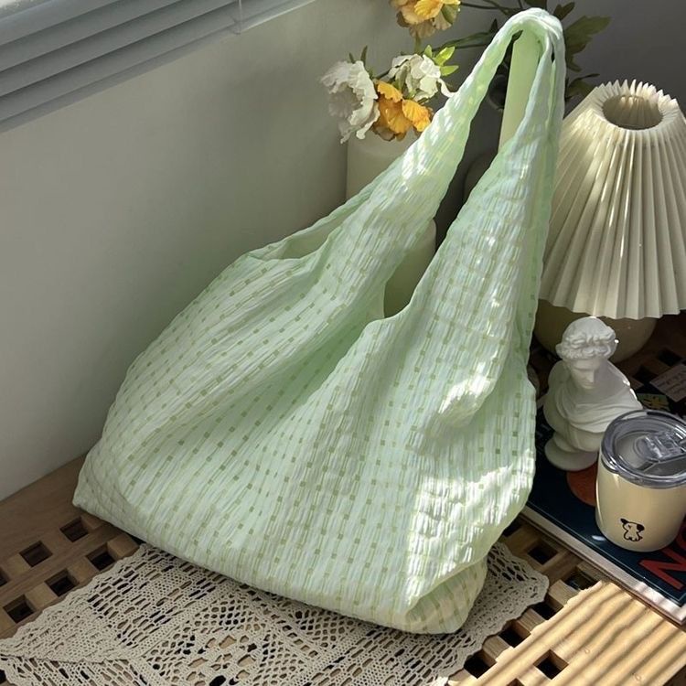 Detail ✇Sera Musim Semi Baru Hijau Mint Tas Kanvas Kotak-kotak Kecil Desain Segar Satu Bahu Permen Seni Tas Peri Serbaguna