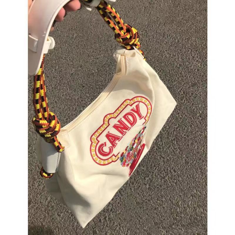 Tas Wanita > Tas Selempang & Bahu Wanita > Sera musim semi dan musim panas all-match ceruk Jepang trendi merek bertekstur kanvas berkapasitas besar tas jinjing fashion bordir tas bahu tas ketiak