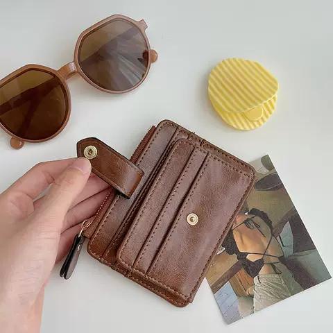 Tas Wanita > Dompet Wanita > Dompet Lipat > Sera retro dompet koin pemegang kartu siswa ultra tipis sederhana hadiah pribadi anti-pencurian tekstur kulit asli tahan lama all-match warna solid