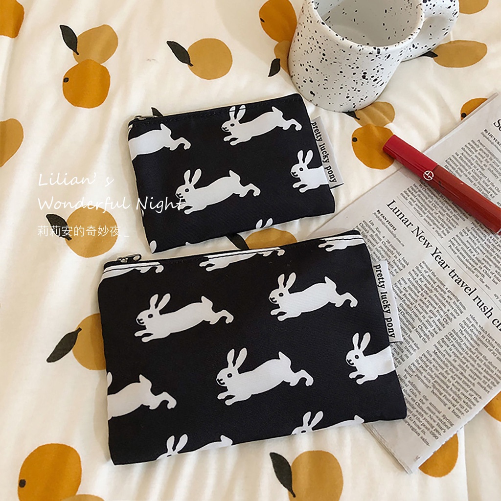 ☢❀Sera Sera Lilian hitam dan putih PONY kelinci tas pena versi Korea dari nilai tinggi desain ceruk tas alat tulis siswa tas penyimpanan portabel
