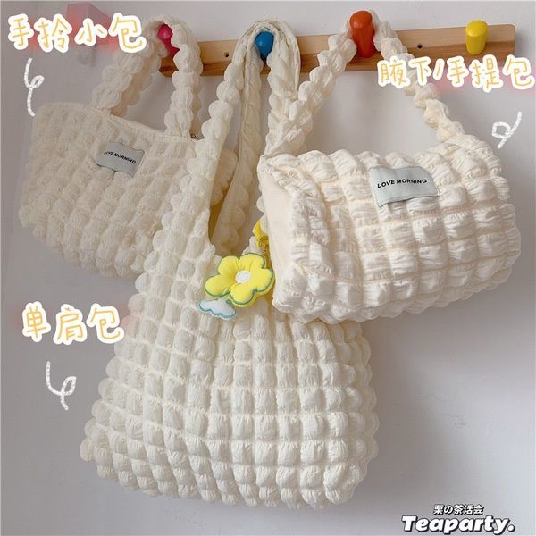 Detail ☢○¤Sera Tas Bahu Ketiak Lipatan Hati Gadis Korea Tas Bahu Portabel Kecil Segar Tas Belanja Kanvas Wanita