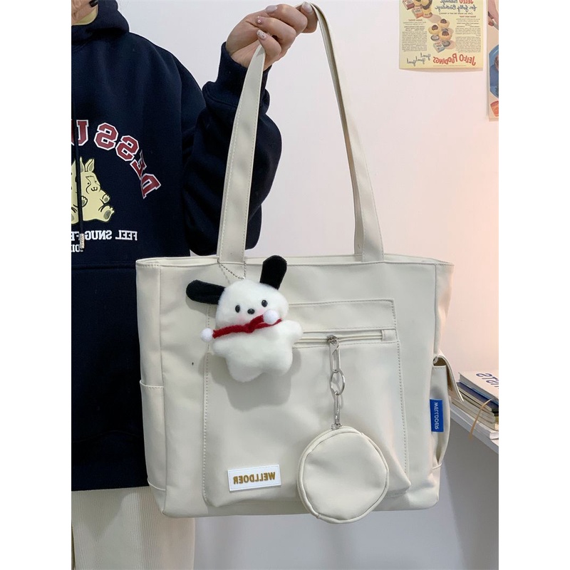 ❧❏✶Sera Toko Angin Jepang Siswa Di Kelas Kapasitas Besar Tas Bahu Wanita Warna Solid Tote Tas Siswa SMA Komuter tas Kanvas