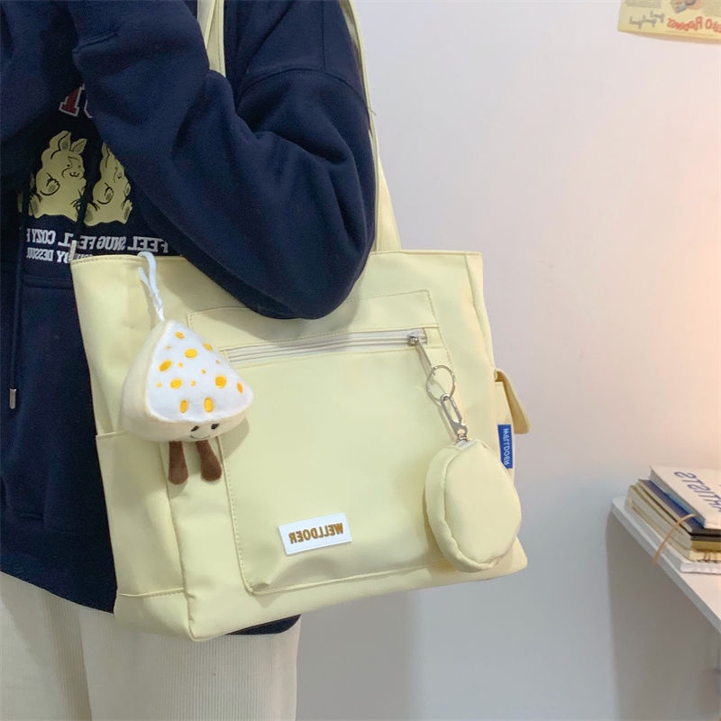 Tas Wanita > Tas Selempang & Bahu Wanita > ❧❏✶Sera Toko Angin Jepang Siswa Di Kelas Kapasitas Besar Tas Bahu Wanita Warna Solid Tote Tas Siswa SMA Komuter tas Kanvas