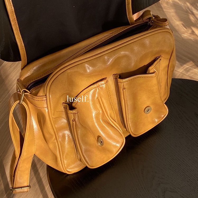Tas Wanita > Tas Selempang & Bahu Wanita > ❉Sera Toko rasa antik tukang pos tas kuliah minyak angin lilin kulit retro besar tas Messenger tas tas bahu kapasitas besar