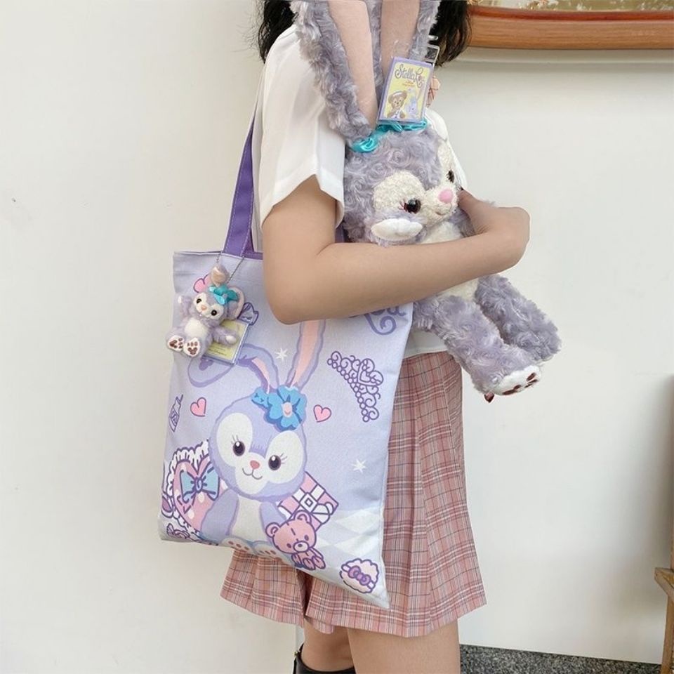 Detail ♠✗▥Sera Toko Xingdelu Tony Kanvas Tas Bahu Net Merah Kartun Kelinci Ritsleting Tas Remaja Gadis Lucu Tas