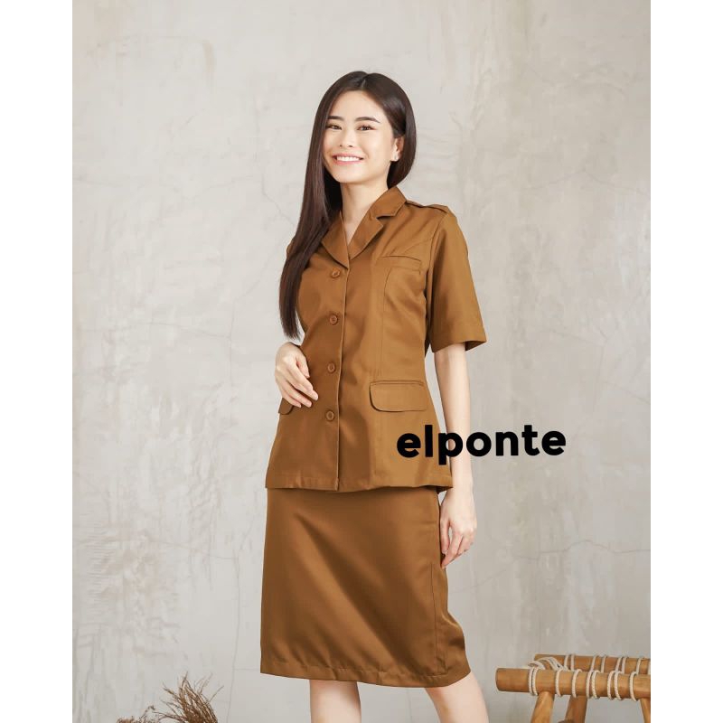 SERAGAM DINAS KHAKY TUA KANTONG -3 SET CELANA PANJANG / SET ROK PENDEK BAHAN KATUN