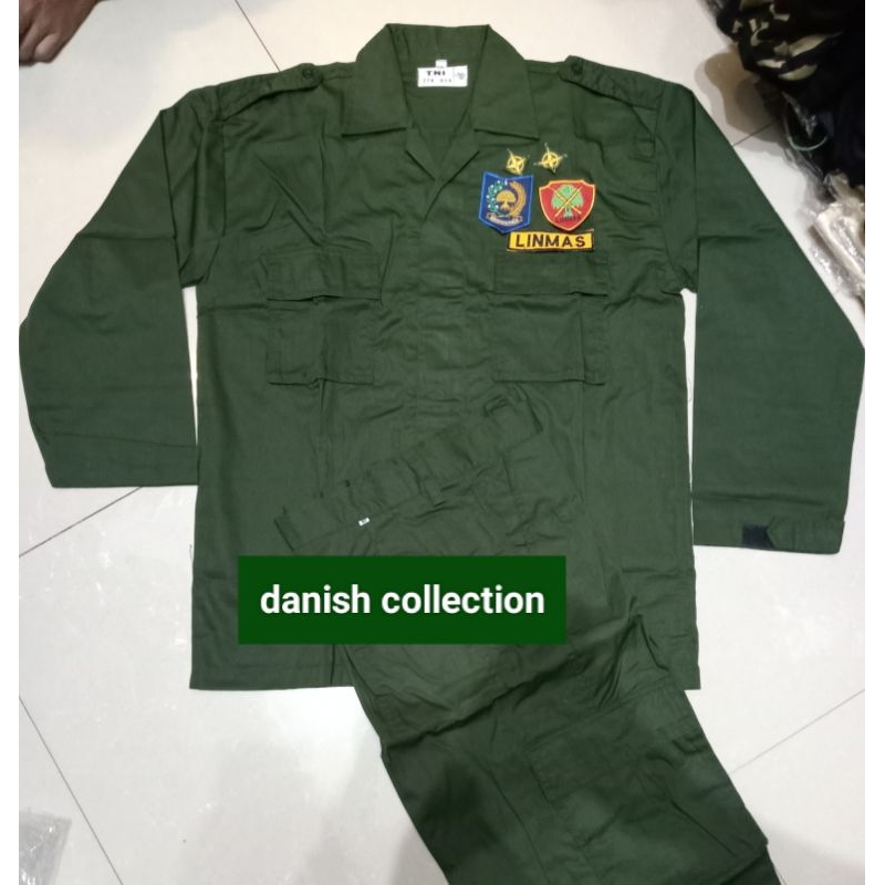 Pakaian Pria > Set Pakaian Pria > SERAGAM PDL LINMAS TERBARU HIJAU ARMY,pdl linmas hijau gelap