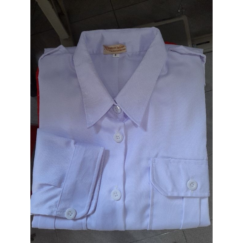KEMEJA SERAGAM PDH PUTIH PANJANG LENGAN PANJANG UJUNG TANGAN MANSET PAKAI KANCING SAKU 2 PAKAI TUTUP PANGKAT DIPUNDAK BAJU BODY PINGGANG