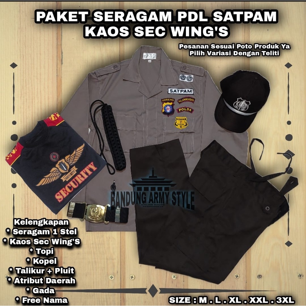 Seragam LENGKAP PDL security model terbaru coklat polisi . bahan = American Drill ( bahan lembut. tidak panas. tidak berbulu dan nyaman di pakai ) warna baju coklat muda warna celana coklat tua ( coklat gelap ) ukuran baju = M. L. XL. XXL. XXXL ukuran celana = 30. 33 .36. 40. 42-46 Harga Sudah Termasuk Atribut + Topi + Talikur + Pluit + Kopel + bonus free masker yah kaka buat perlindungan #COVID - 19 CATATAN PENTING !! SERAGAM SUDAH DI LENGKAPI BET / ATRIBUT BORDIR. DAN BORDIR DAERAH SUDAH DI SESUAIKAN DENGAN ALAMAT PESANAN. REQUEST BISA DI CATATAN PESANAN ATAU BISA LEWAT PESAN. *HAPPY SHOPPING*
