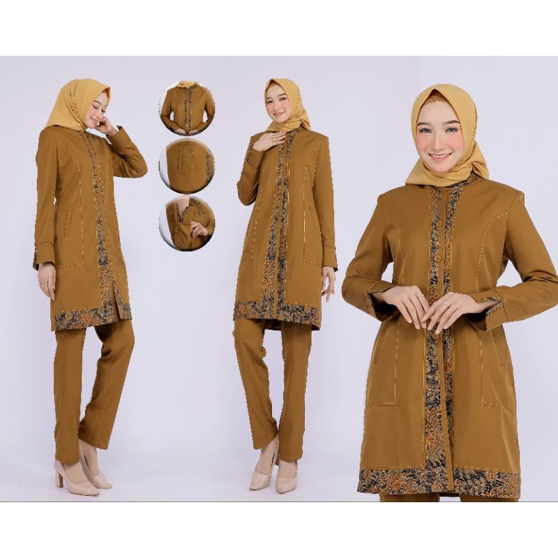 Pakaian Wanita > Jaket, Mantel, & Rompi > Blazer > SERAGAM TUNIK WARNA KHAKY TUA / kHAKY MUDA FREE BATIK KOMBINASI BATIK BAJU DINAS GURU PNS PEGAWAI NEGERI FREE HIJAB TUNIK BATIK TUA /MUDA