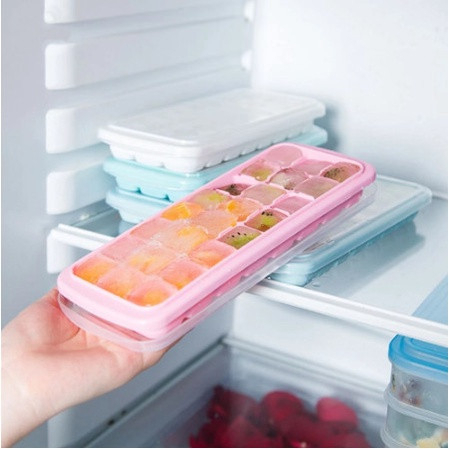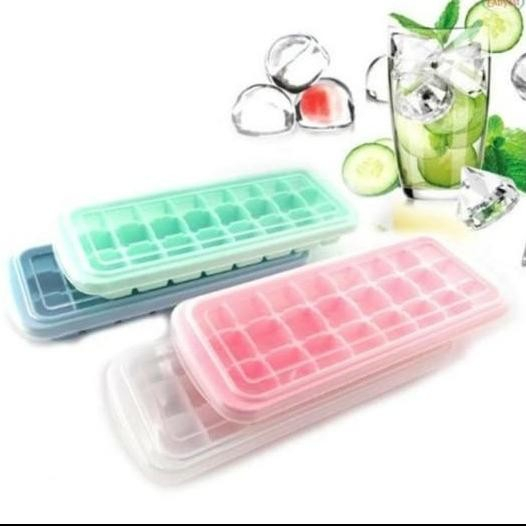 Perlengkapan Rumah > Peralatan Dapur > Tempat Penyimpanan Makanan > SerbaGrosirMurah 24 Lubang Cetakan Es Batu Jelly Puding Dengan Tutup Higienis Silikon Ice Cube