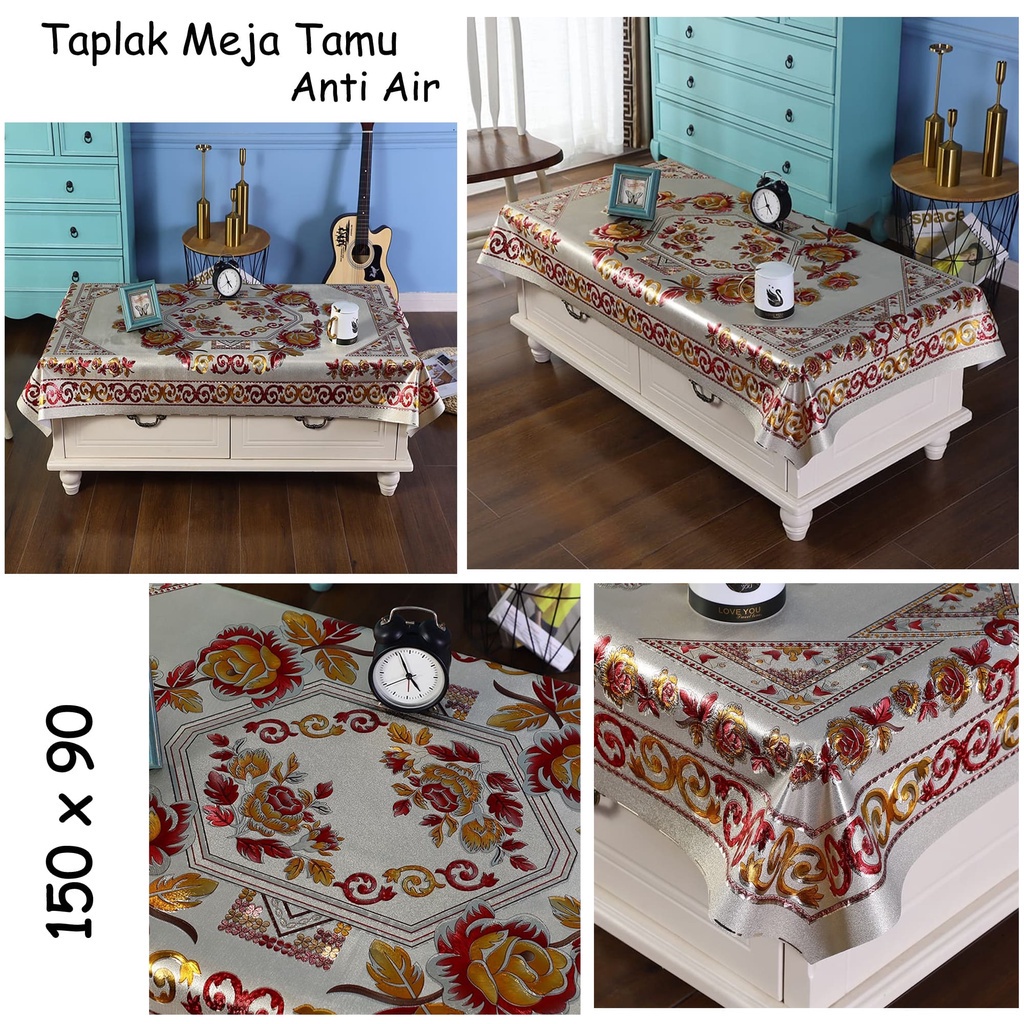 Fitur: Nama: Taplak Meja Ruang Tamu Motif Sultan Bahan PVC Oilproof Cover Meja Table Mat Anti Air Ukuran: (150 x 90 cm)