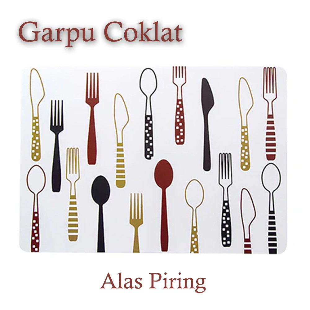 (SerbaSerbi)Alas Piring Gelas Meja Makan Pvc Anti Panas Placemats /Tatakan Piring Gelas Anti Air Motif Kopi Sendok Garpu -Terlaris