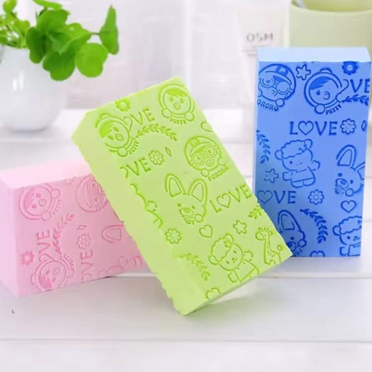 SPON MANDI BABY TERBUAT DARI BAHAN YG SANGAT HALUS DAN LEMBUT MENYERAP LEBIH BANYAK AIR TIDAK MENGAKIBATKAN KULIT TERGORES TERDAPAT GAMBAR KARAKTER LUCU
