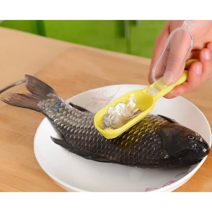 Perlengkapan Rumah > Peralatan Masak > Parutan & Peeler > (SerbaSerbi)Pengupas Pengorek Sisik Ikan Bermanfaat / Alat Penghilang Pembersih sisik ikan Praktis Dengan Tempat Pembuangan