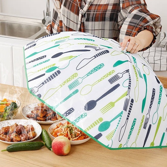 - Tudung saji untuk menutup makanan/minuman anda melindungi dari debu, kotoran dan lalat /serangga - Bisa dilipat apabila tidak terpakai sehingga menghemat tempat - Terdapat lapisan aluminium foil didalamnya sehingga makanan/minuman anda tetap hangat / dingin lebih lama