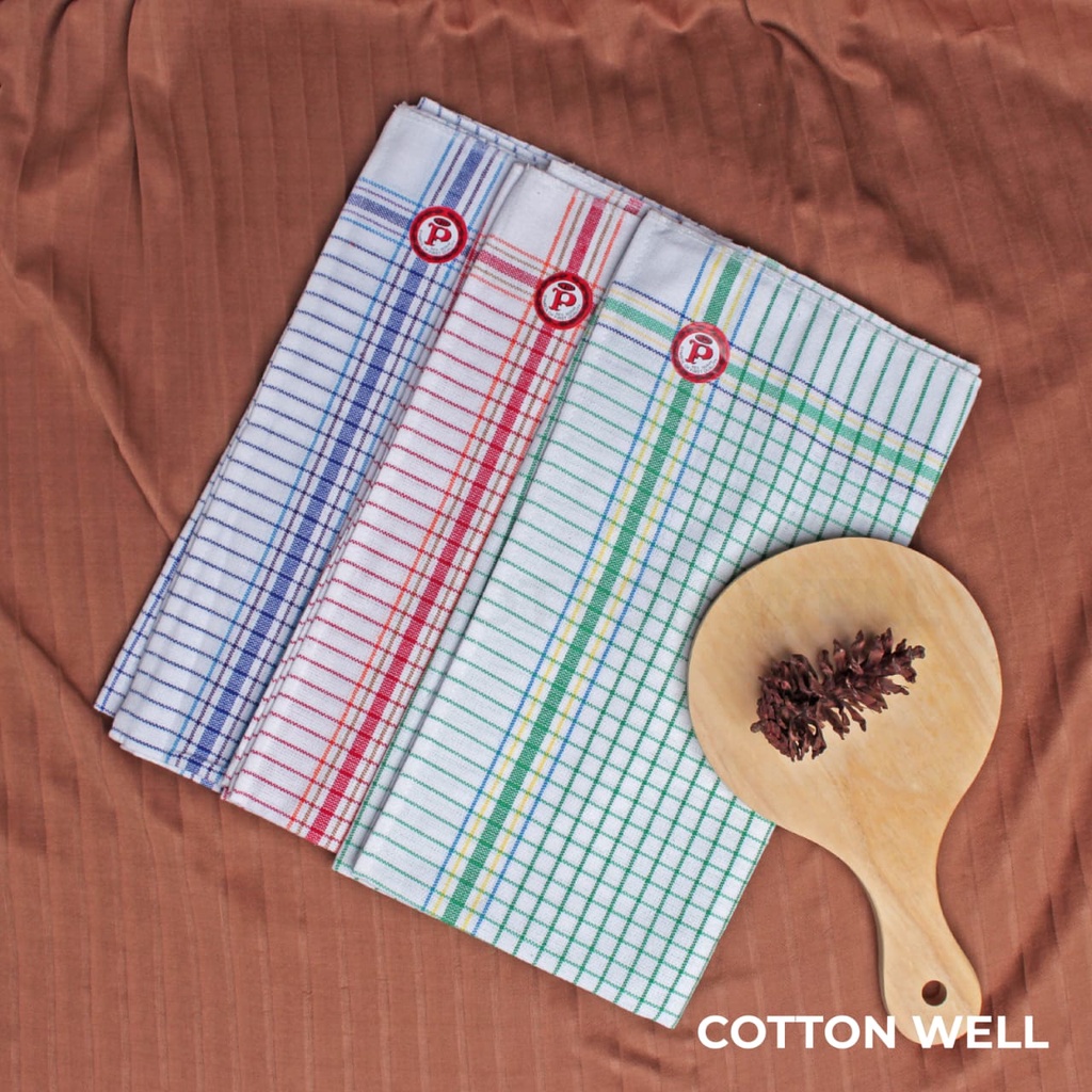 Bahan :  100% Cotton  Super Tebal & Lembut  Daya serap tinggi  Premium Quality  Cocok untuk lap piring, lap tangan, lap meja, dll  Bisa digunakan di lingkungan kitchen