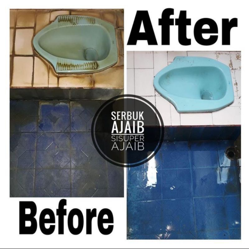 🔘Cara membersihkan flek membandel 1.basahi permukaan dgn air sebelum serbuk di taburkan 2.taburkan serbuk ajaib ini ketempat noda (tabur tipis & rata) diamkan 5-10mnt tdk boleh lebih 3.sikat lalu bilas dgn air