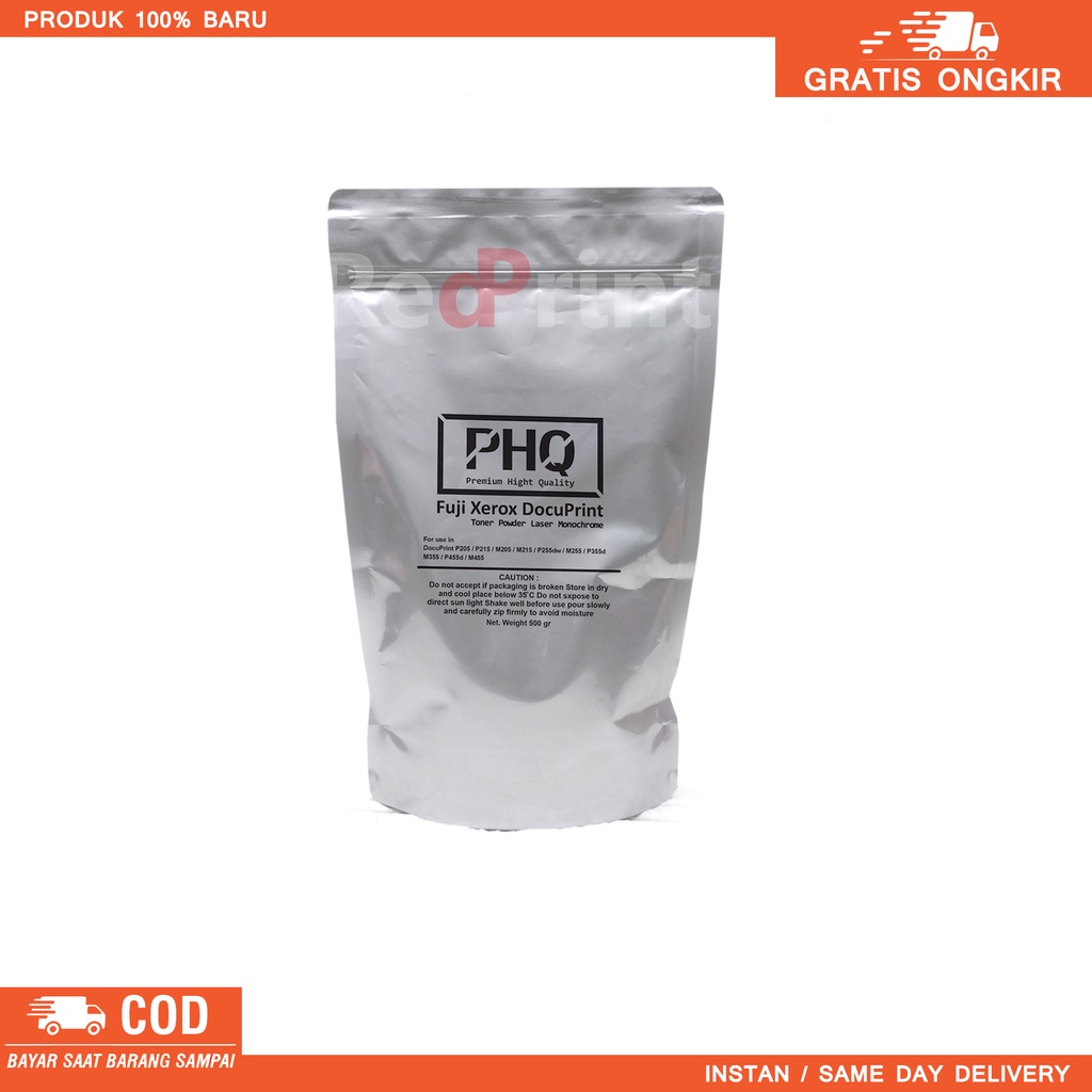 Serbuk Toner Premium High Quality merupakan toner dengan kualitas terbaik melalui proses Quality Control yang sangat ketat agar mampu menghasilkan kualitas cetak setara OEM, hasil cetak warna hitam pekat dan jelas, tidak bocor di printer tidak bergaris atau kotor di kertas, support semua jenis kertas laserjet, cocok untuk kebutuhan percetakan/perkantoran yang membutuhkan kualitas cetak optimal dan stabil seperti print logo, gambar, teks/font tebal, print document dll. memberikan jaminan kualitas cetak untuk printer laserjet anda.