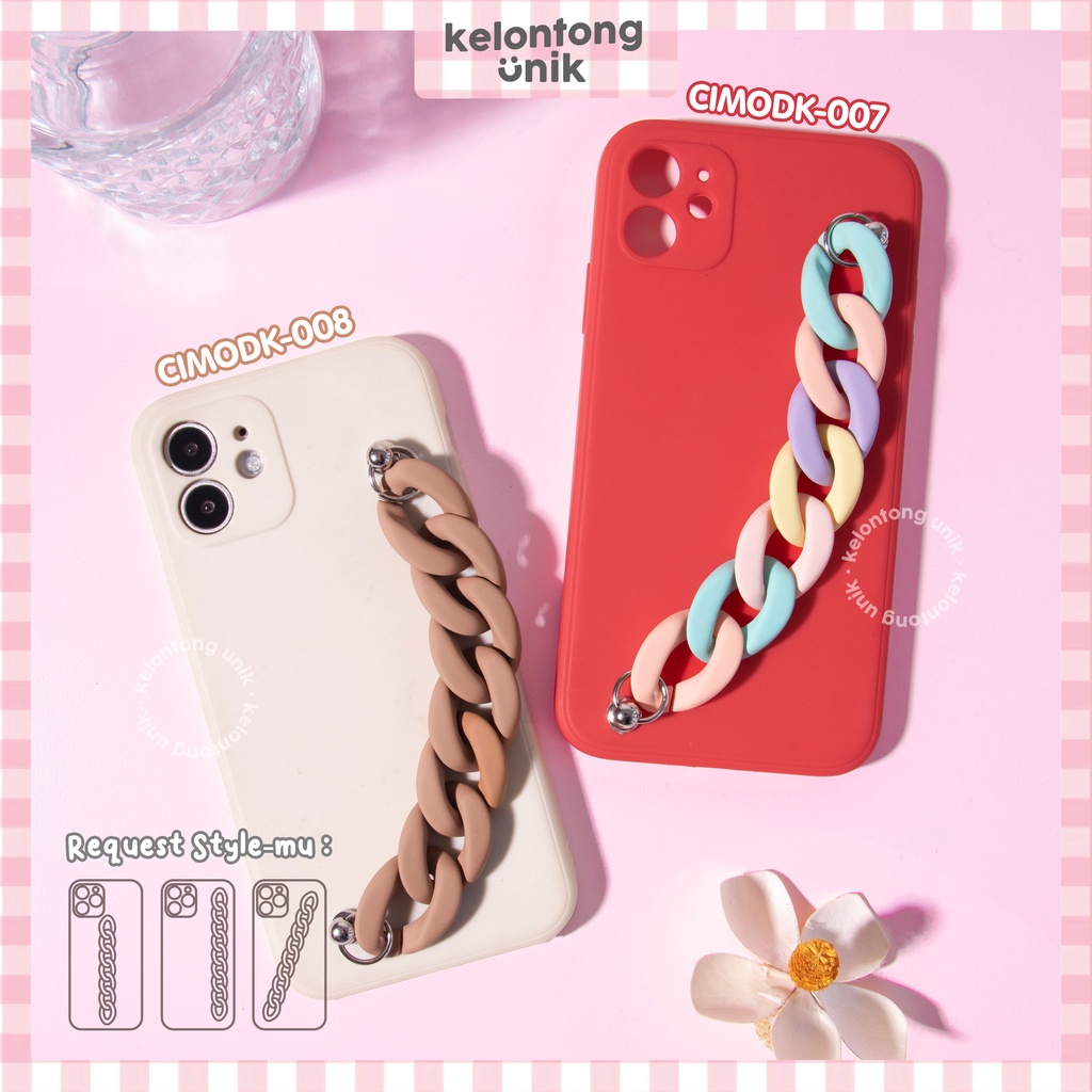Detail (Seri 4) For iPhone - Square Edge Silicone Soft Case + Doff Chain Grip/ Chain Case Rantai