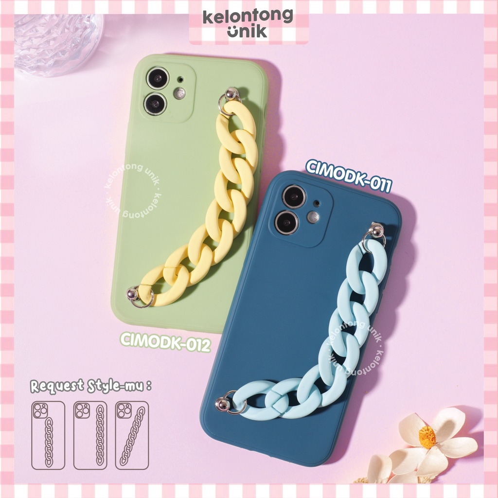 Detail (Seri 6) For iPhone - Square Edge Silicone Soft Case + Doff Chain Grip/ Chain Case Rantai