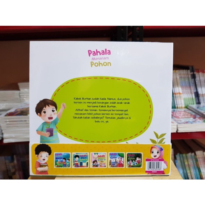 • Buku ini dilengkapi dengan ilustrasi fullcolor agar saat menyimak kisahnya, si kecil semakin antusias. Selain itu, ada konten kutipan hadits berkenaan dengan amal jariyah yang sedang dikisahkan dan ada juga konten games seru yang menghibur, tapi juga mengedukasi.
