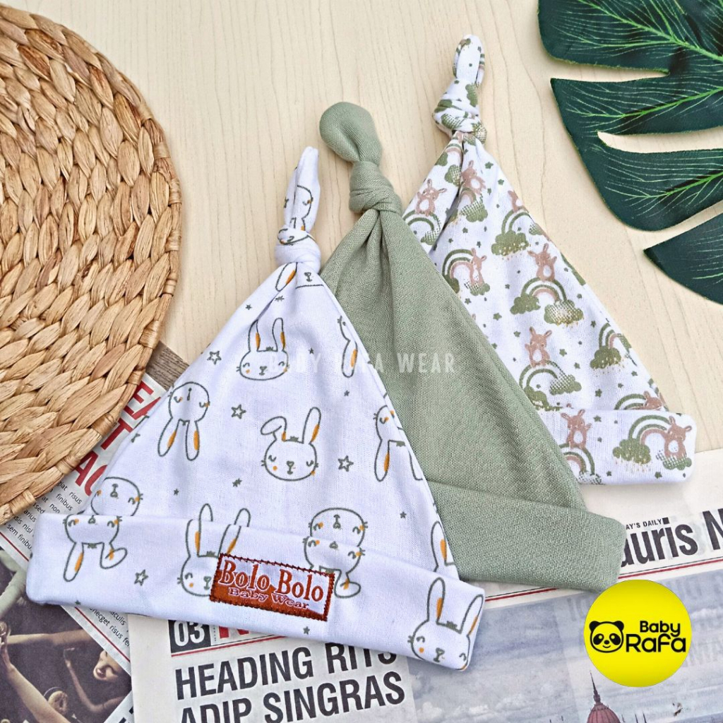 Serian Hijau - 3 Pcs Topi Kupluk Bayi Baru Lahir Topi Bayi 0 - 3 Bulan HIJAU SERIES merk SNI Bolo - Bolo