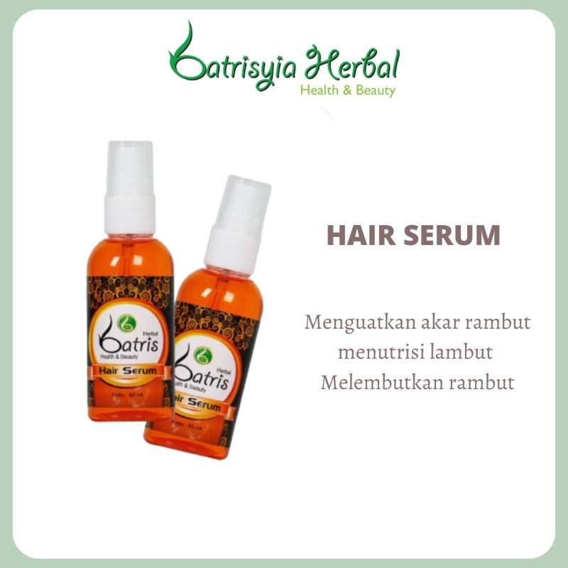 Hair Serum Batrisyia merupakan serum rambut yang mengandung vitamin E, vitamin F dan Argan oil, hair serum ini sangat mudah digunakan serta banyak pula manfaatnya. Produk ini sangat dianjurkan bagi para wanita yang sering melakukan hair styling atau jarang memperhatikan kesehatan rambut.