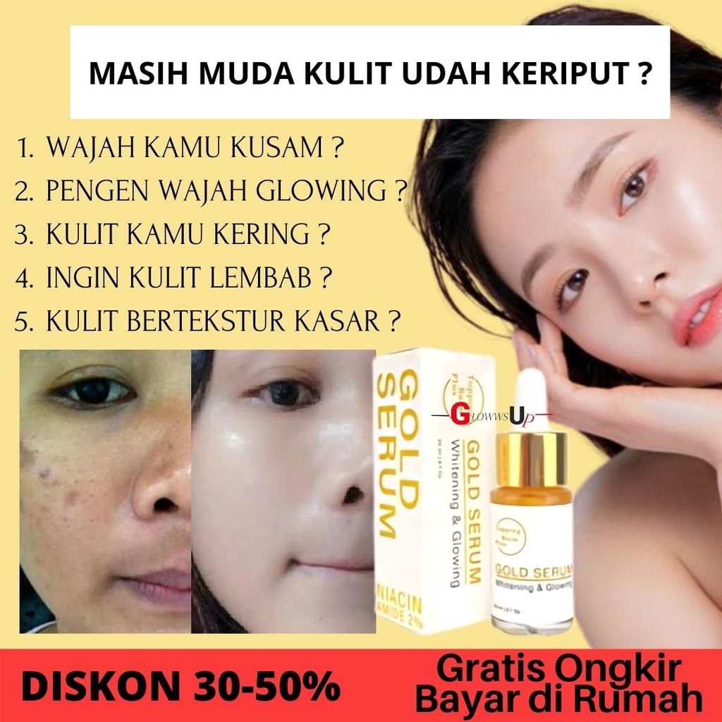 Detail SERUM WAJAH GLOWING PELEMBAB WAJAH TOPPING BALM PLUS GOLD SERUM WHITENING N GLOWING 20ML - SERUM GOLD PENCERAH WAJAH