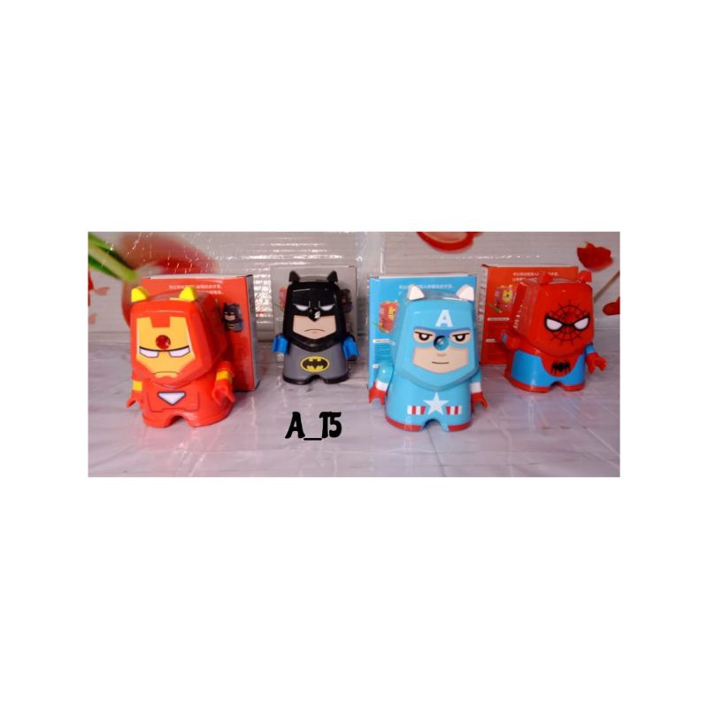Rautan merupakan Rautan pensil bergambar karakter SUPERHERO & OWL , sangat lucu di gunakan anak anak sekolah