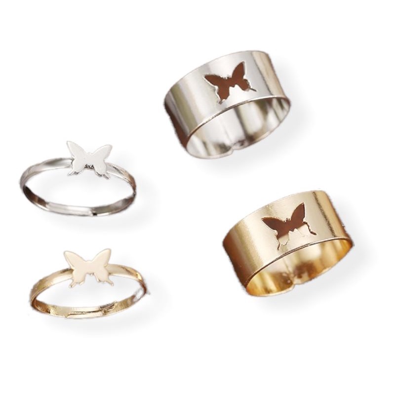 Detail Set (2 buah) Cincin Couple Butterfly Kupu Kupu Fashion Ring Pasangan Sepasang Gaya Korea