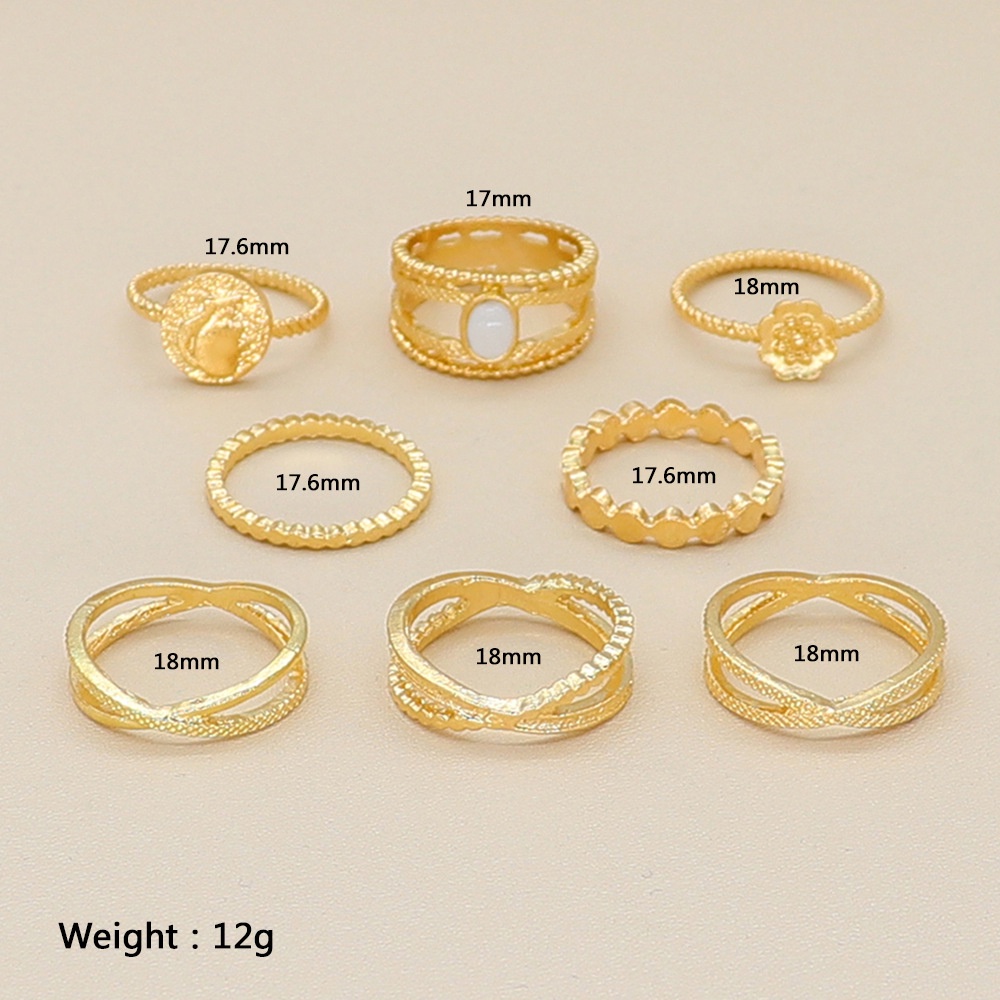 Detail Set 8 Pcs Cincin Bahan metal Motif Bunga Salib Geometris Gaya Eropa Amerika
