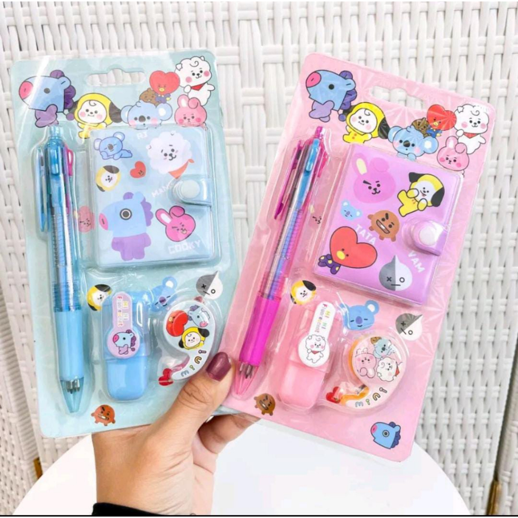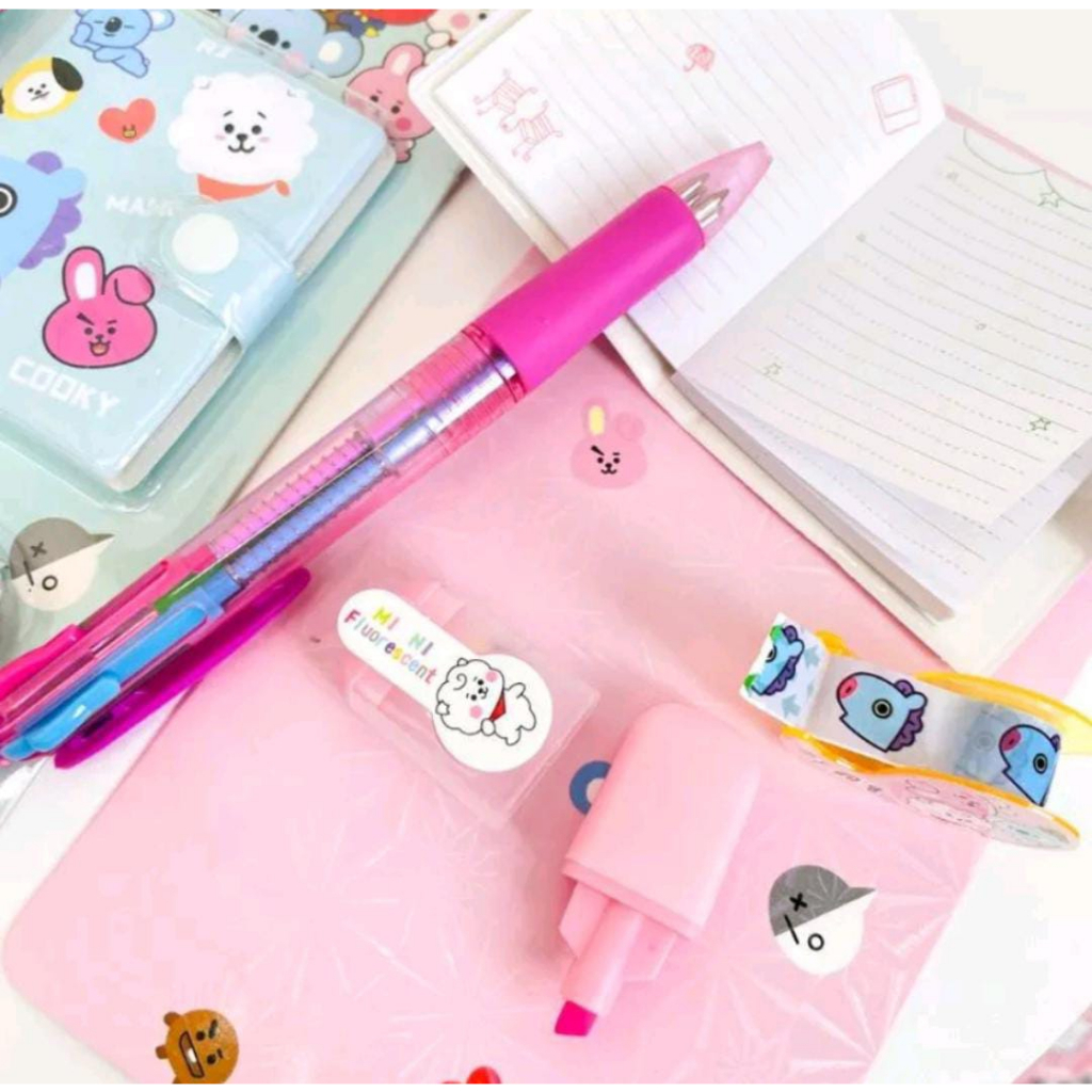Set Alat Tulis Mini BT21 BTS isi 4 Buku Kecil Pulpen Highlighter Mini Solatip Paket Murah Kado Unik Souvenir