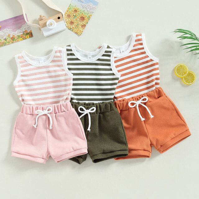 Detail SET ANAK GARIS UNISEX PREMIUM / SET ANAK STRIPE / SINGLET ANAK SET STRIPE