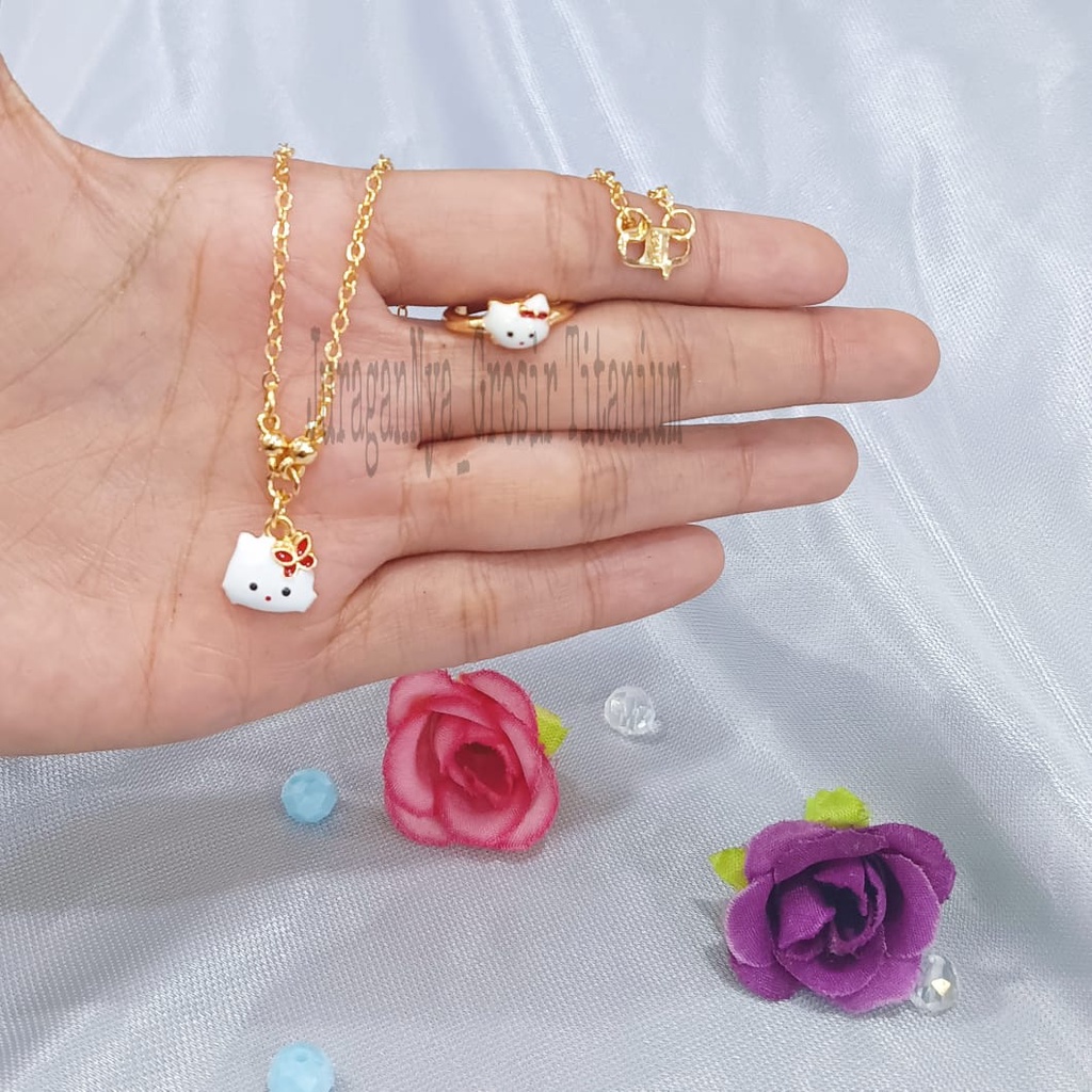 Detail SET ANAK KALUNG+CINCIN MERAH KARAKTER TITANIUM SUPER MEWAH ANTI KARAT&ANTI LUNTUR
